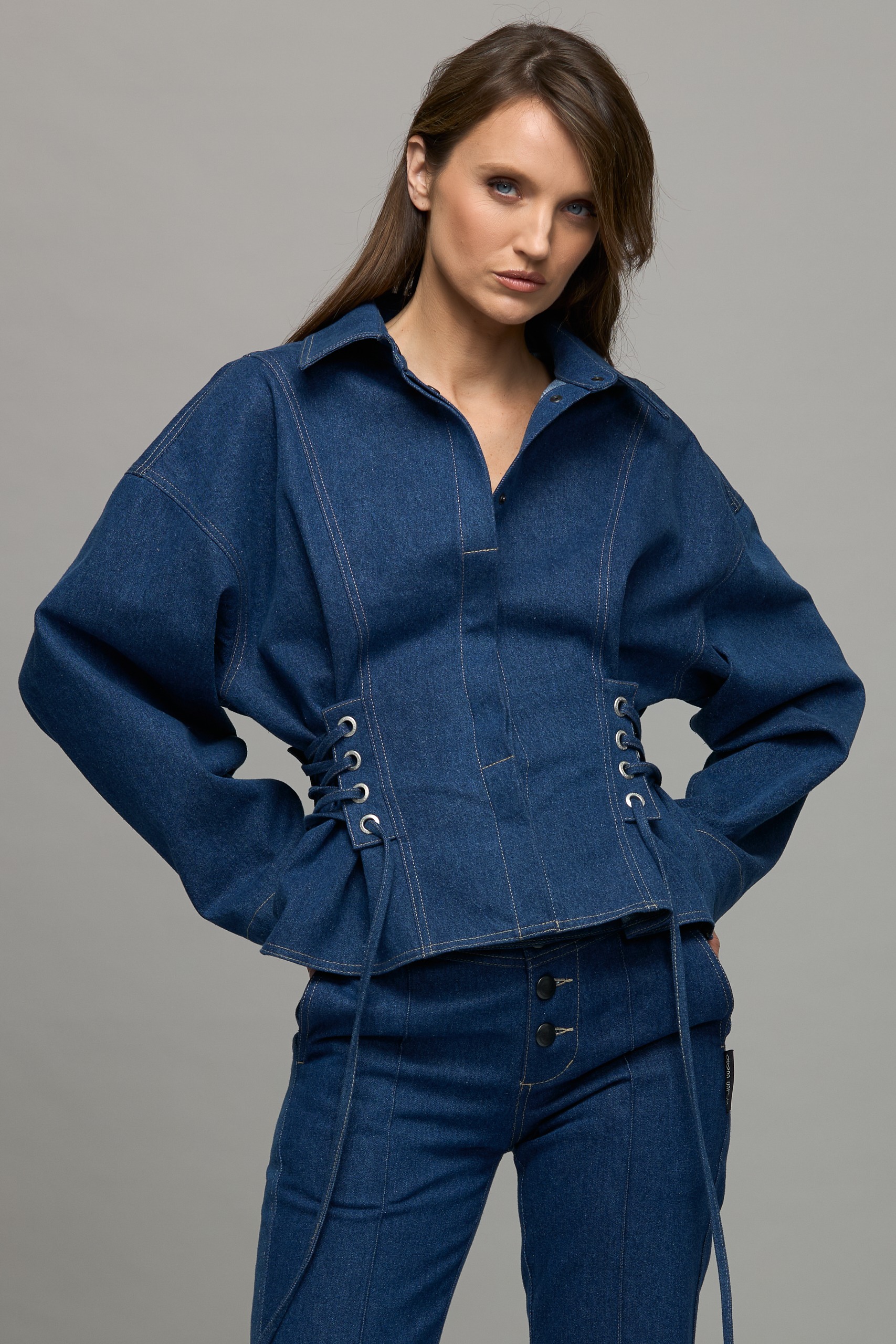 - Denim shirt with press studs in the front