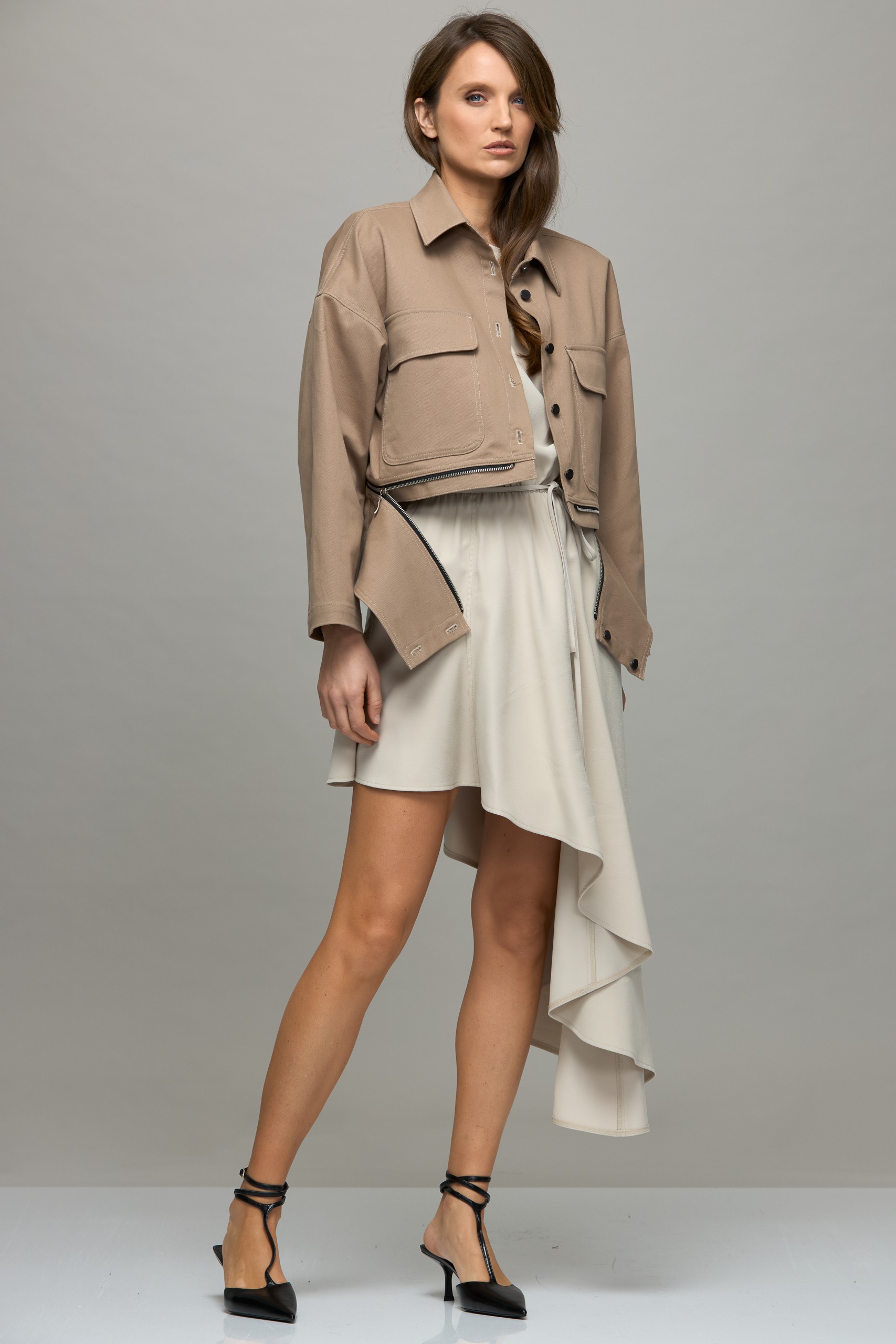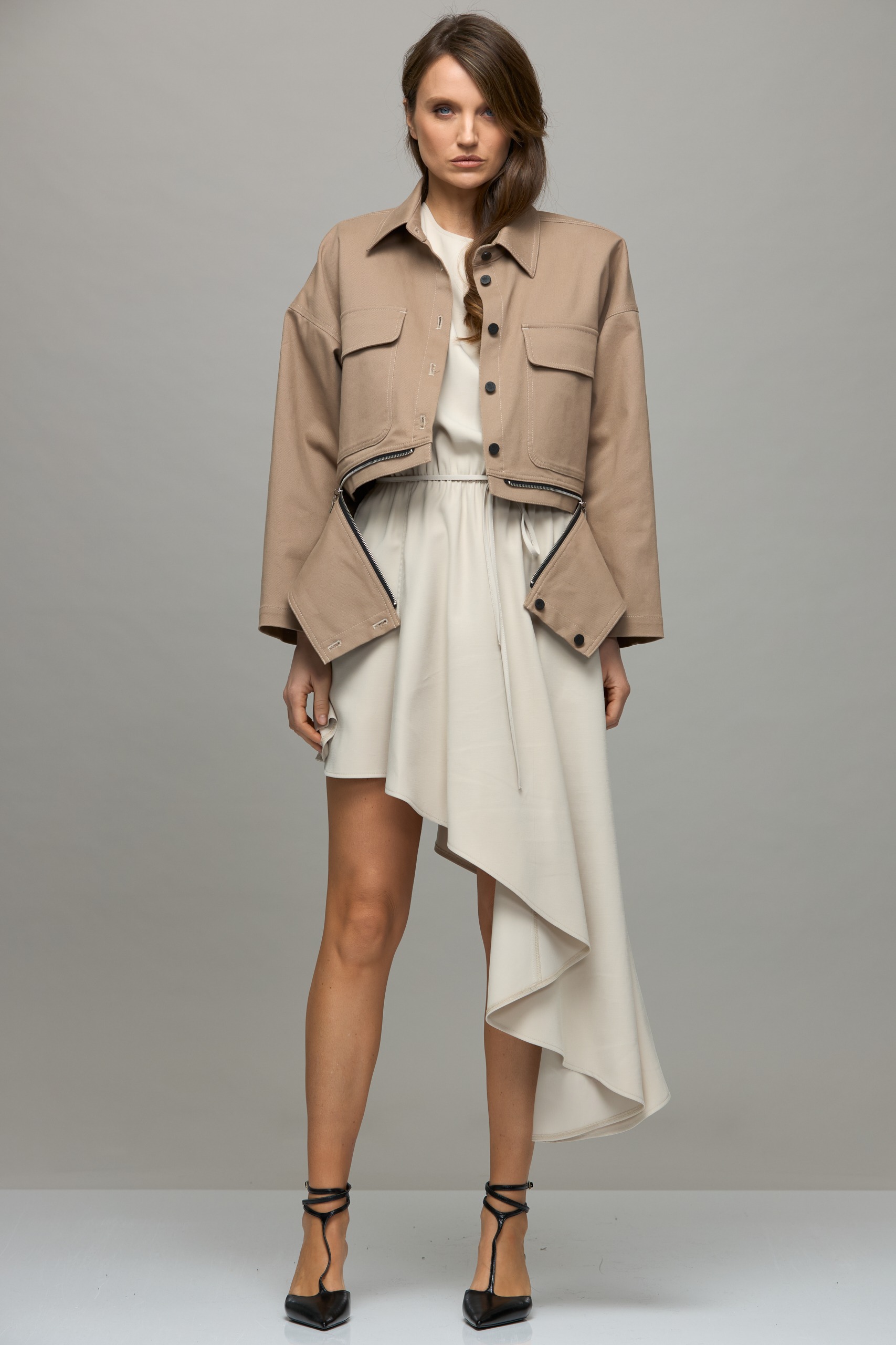 - Asymmetrical dress made of flowing fabric
