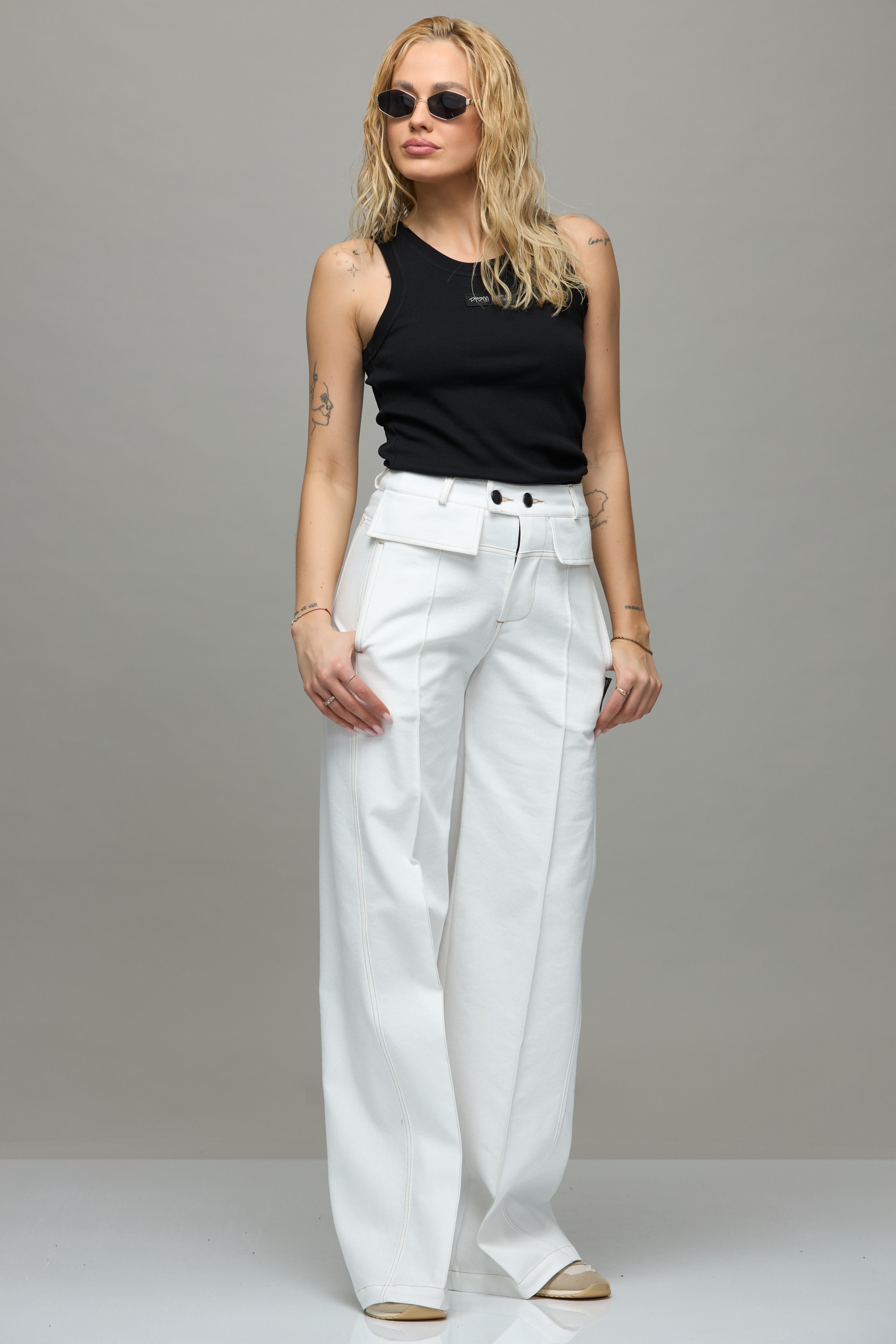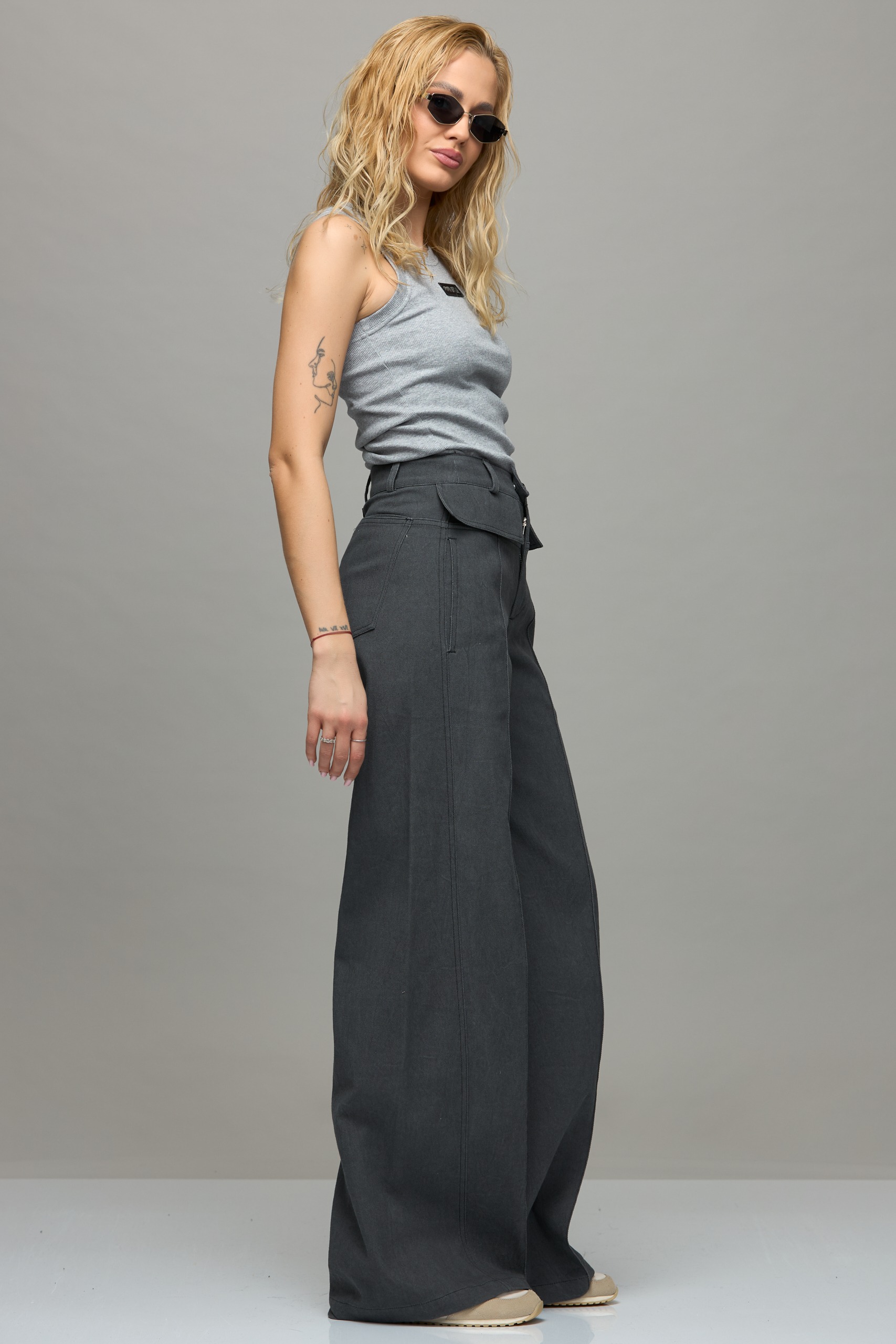 - Slightly flared jeans