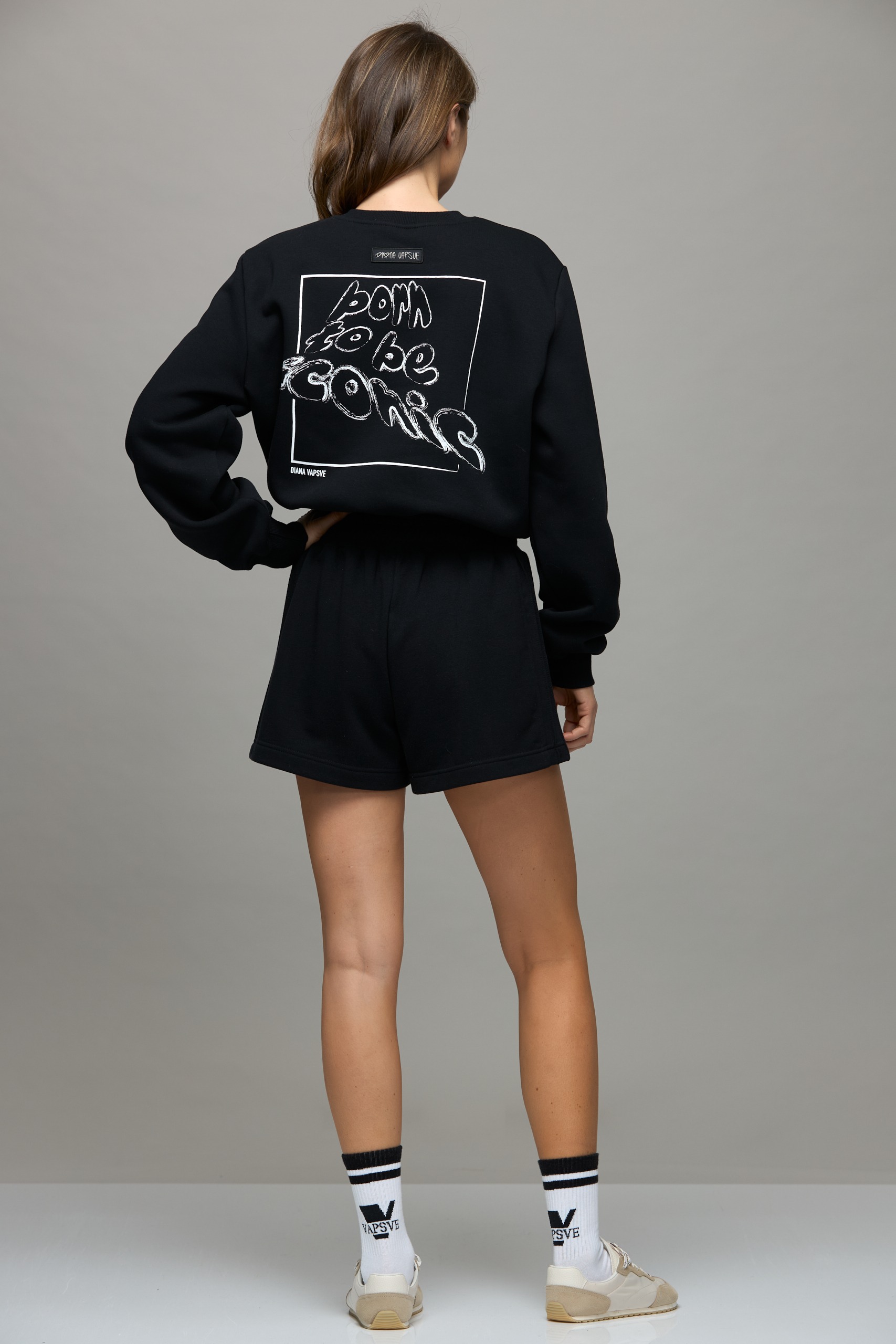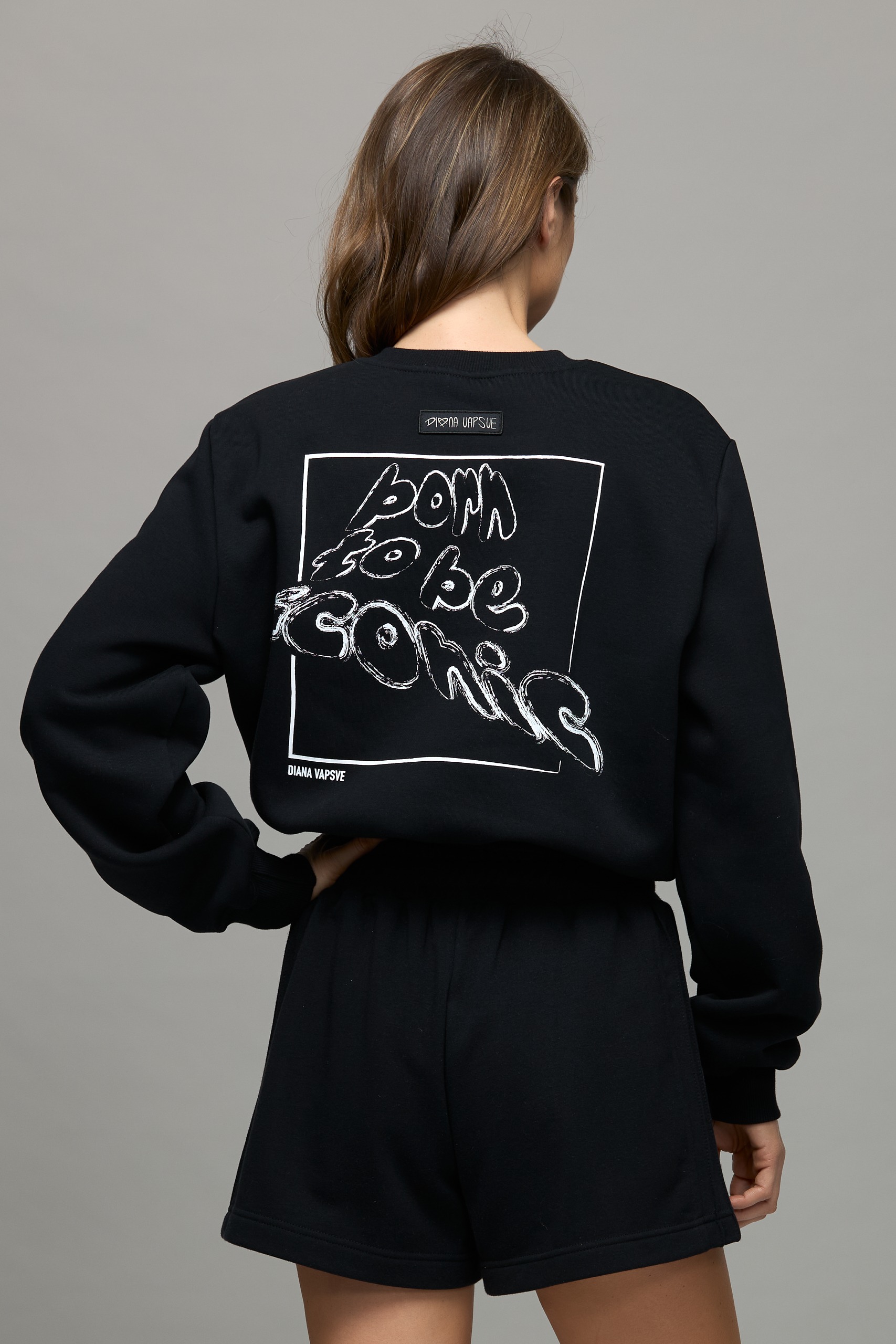 - “Born to be iconic” lettering on the back