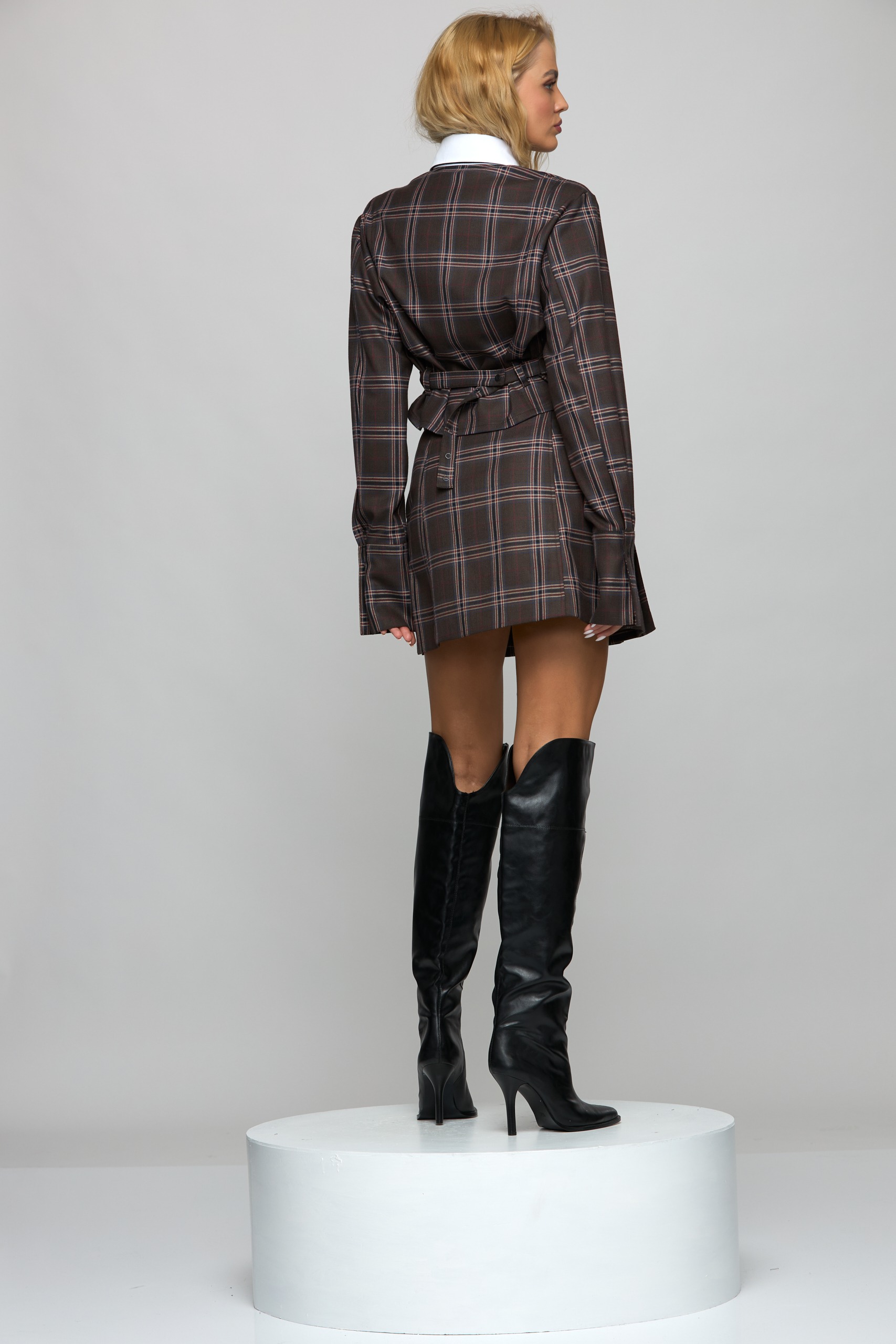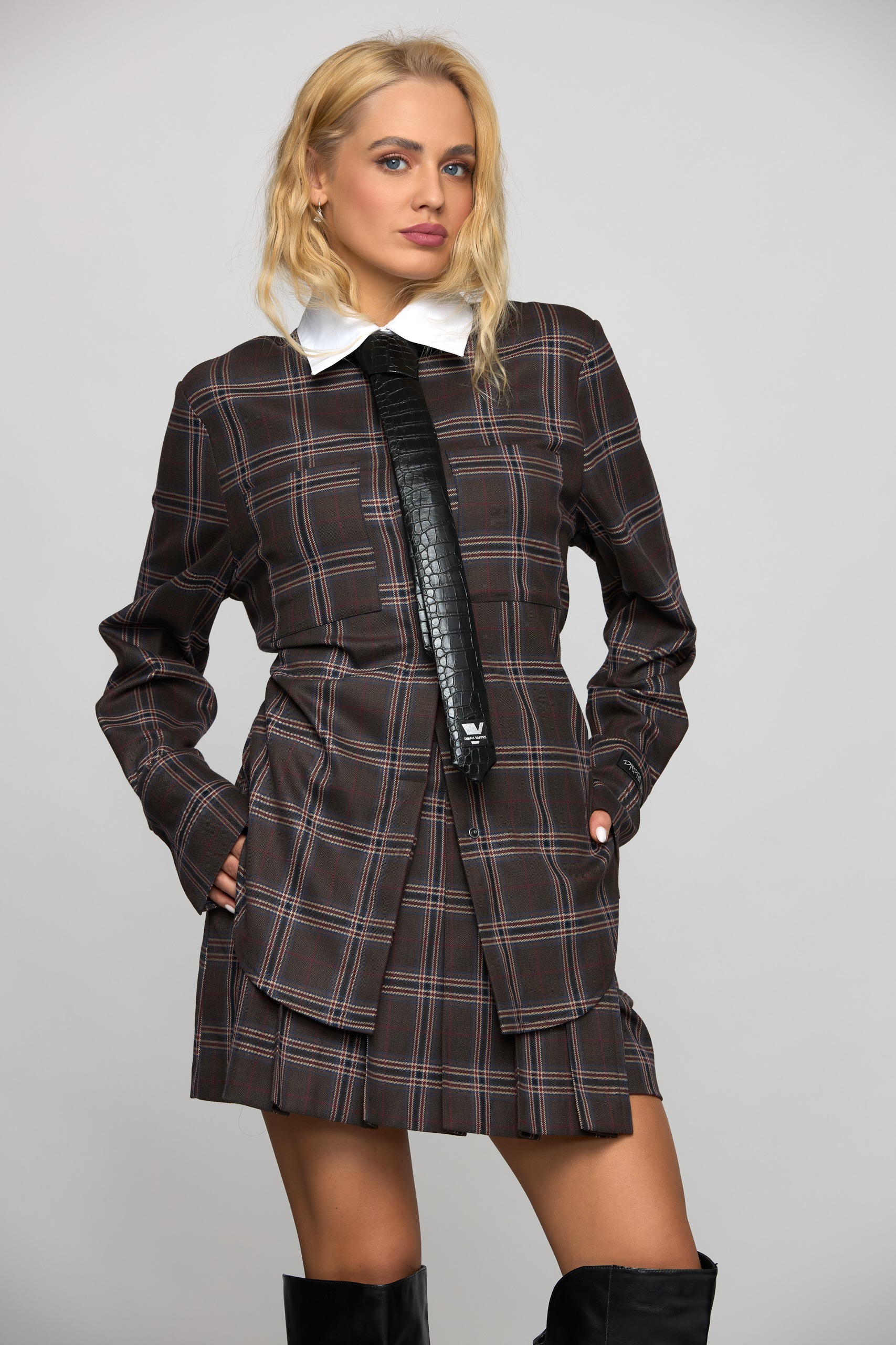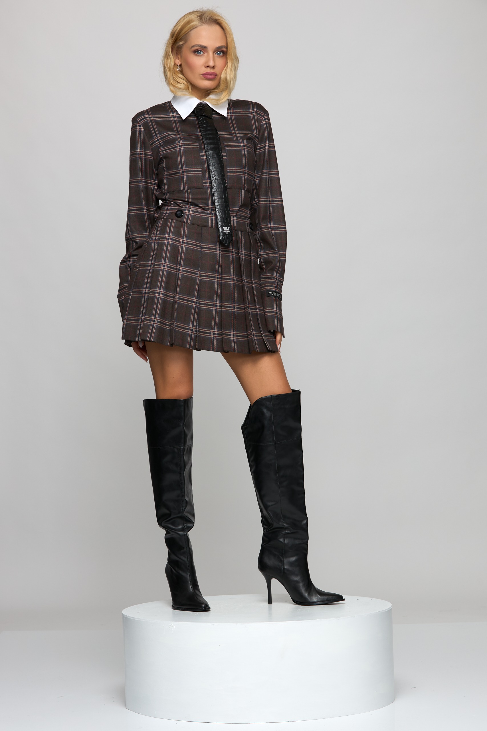 • Checkered fabric, pleated skirt at the front