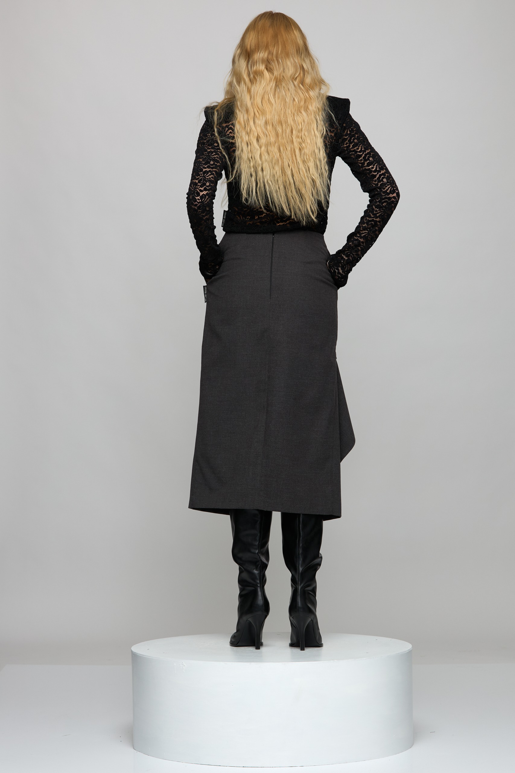 - The skirt can be worn both with the details fastened and unfastened to create different looks