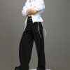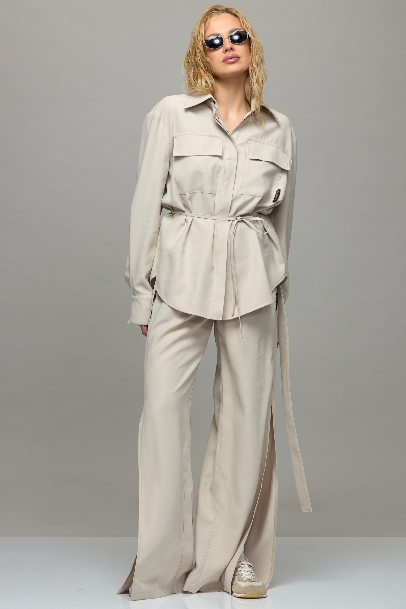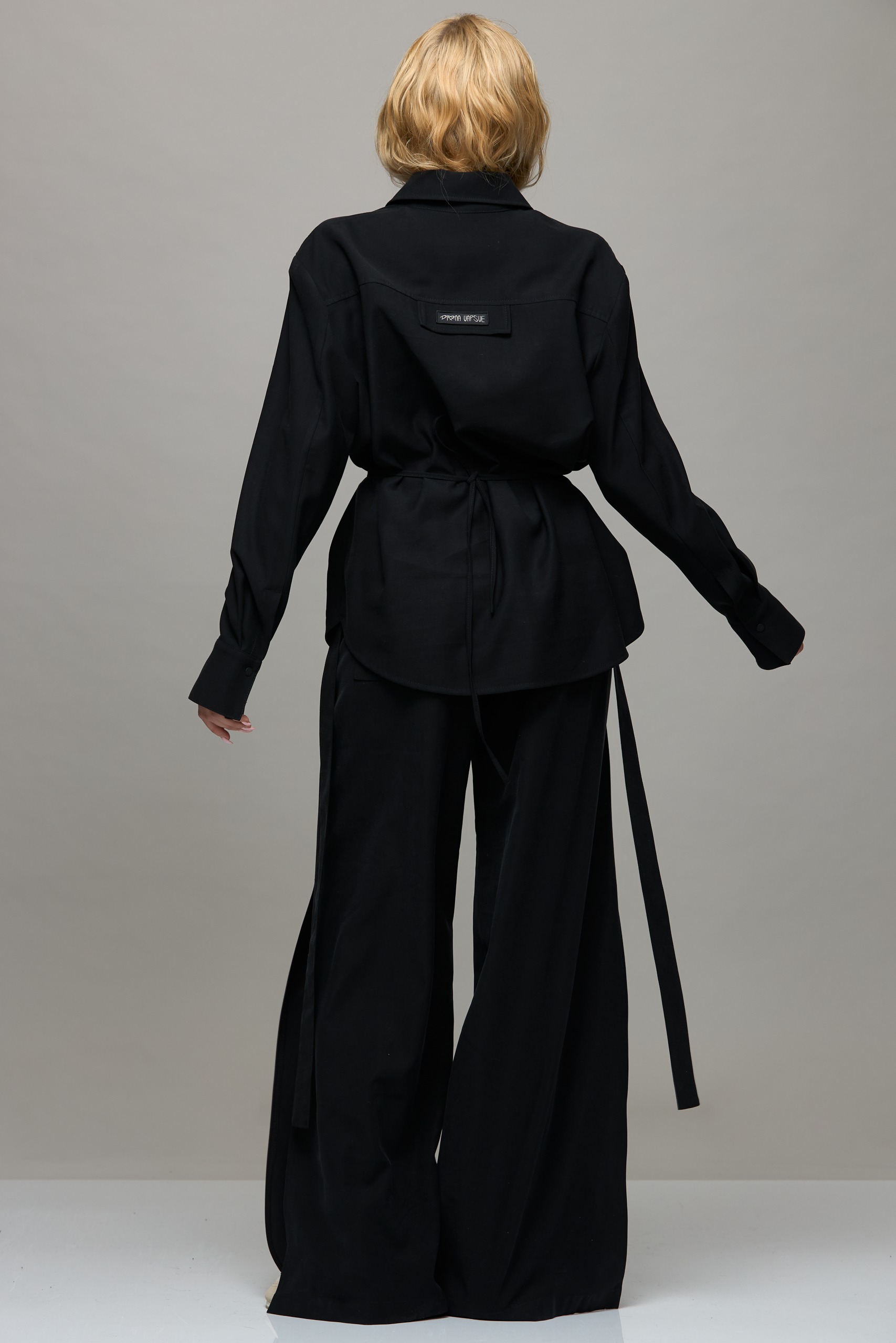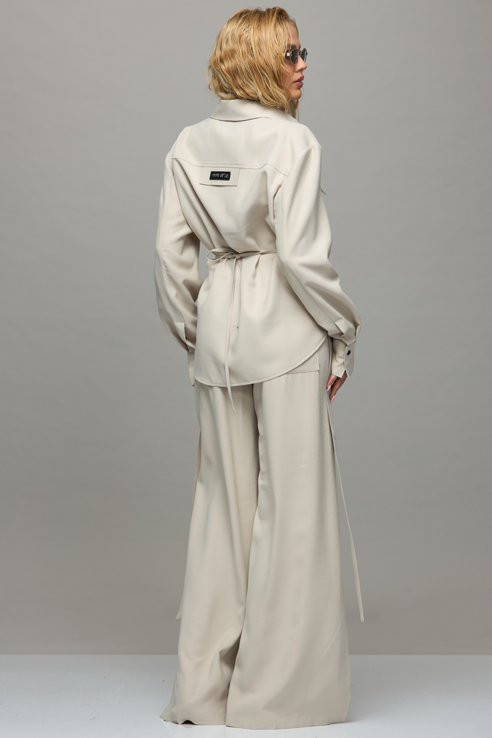 - The waist of the pants has an additional belt that can be wrapped around the waist, which gives the pants a double-waist silhouette