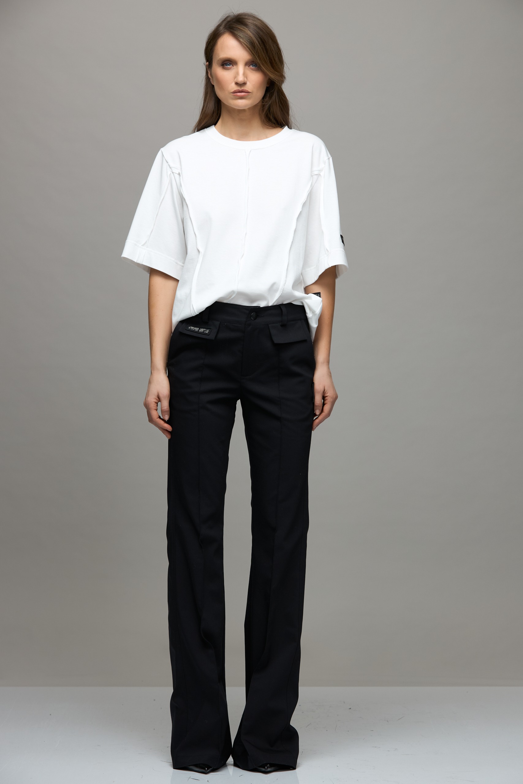 - Flared trousers in suiting fabric